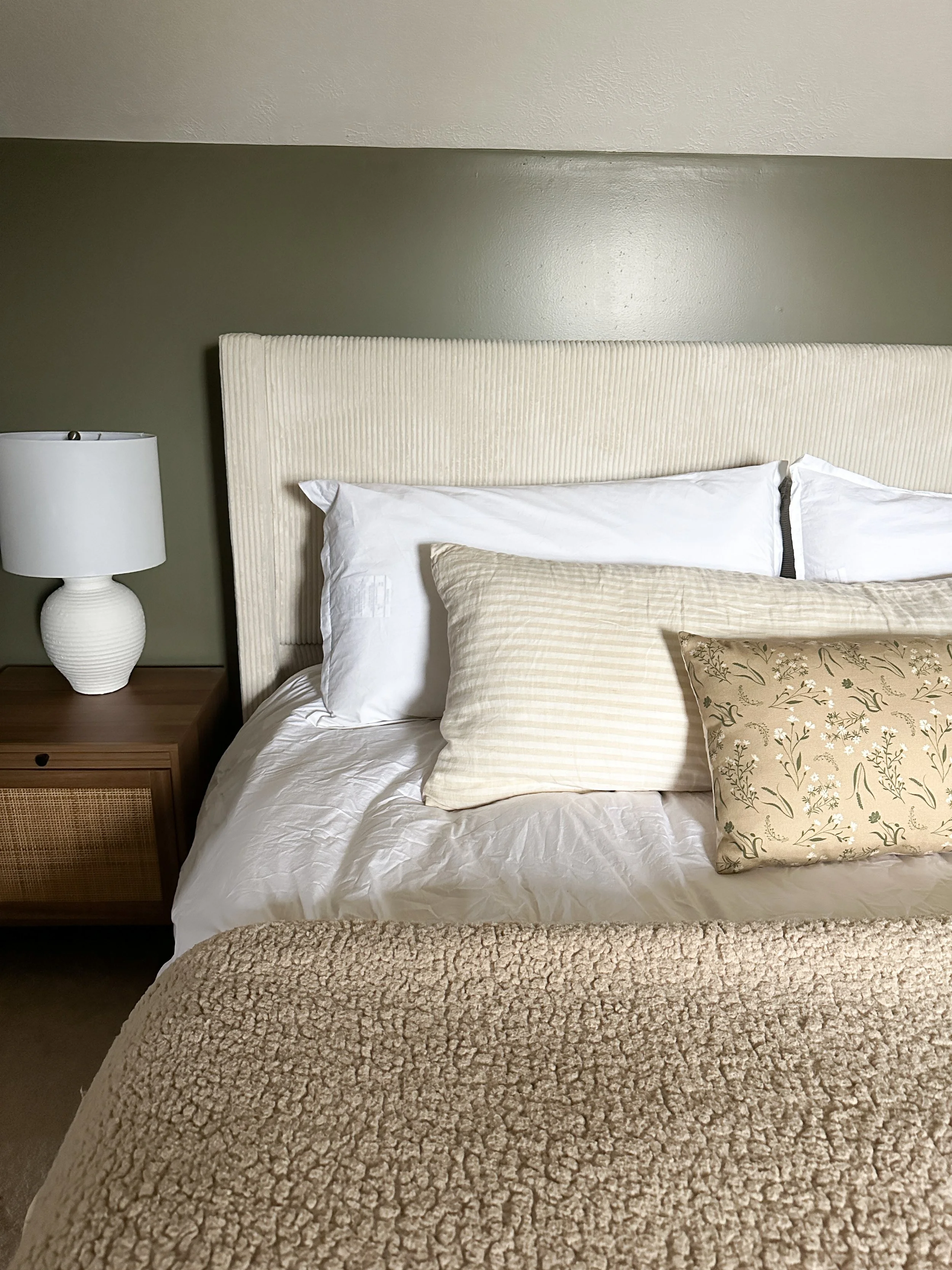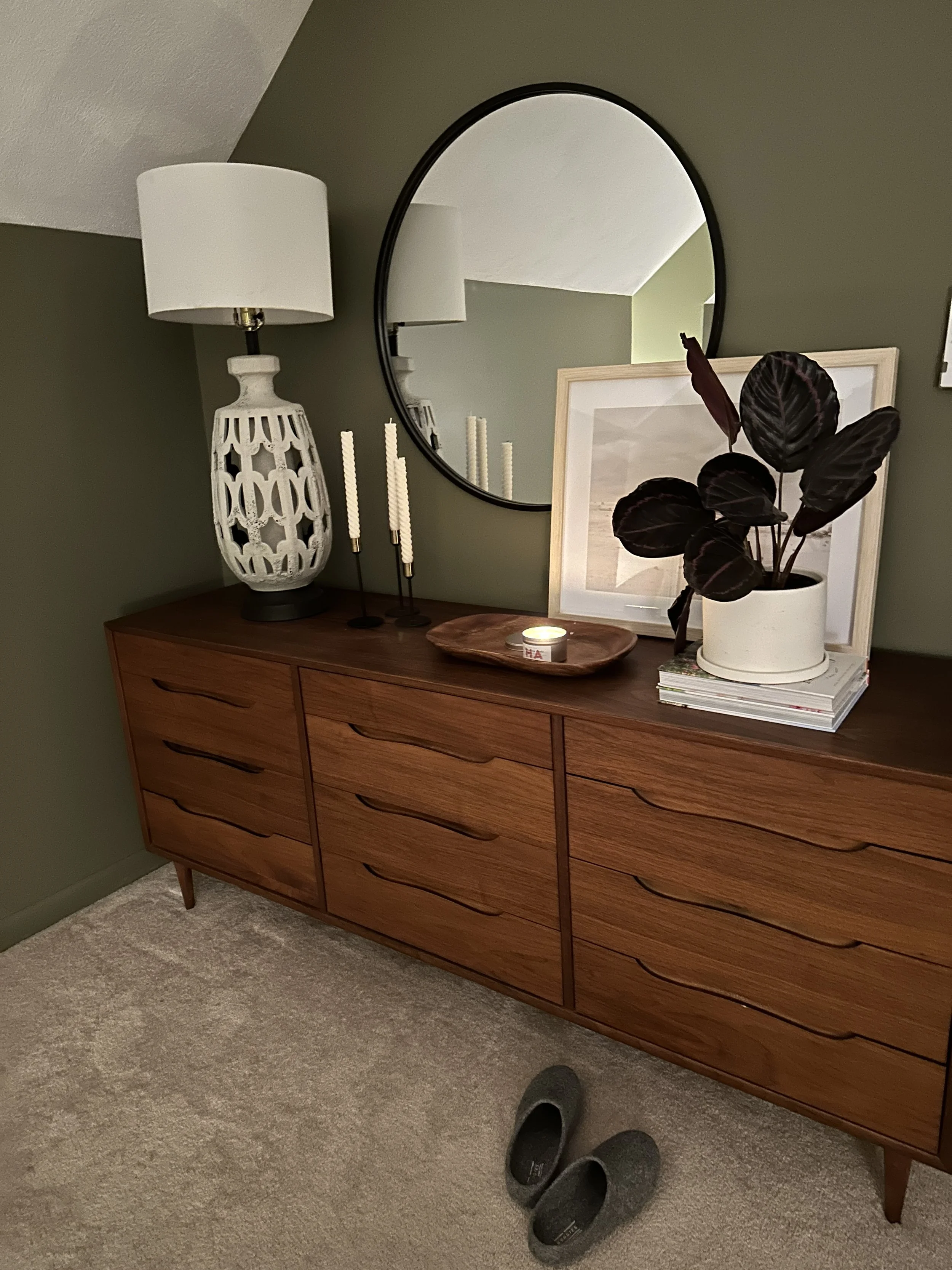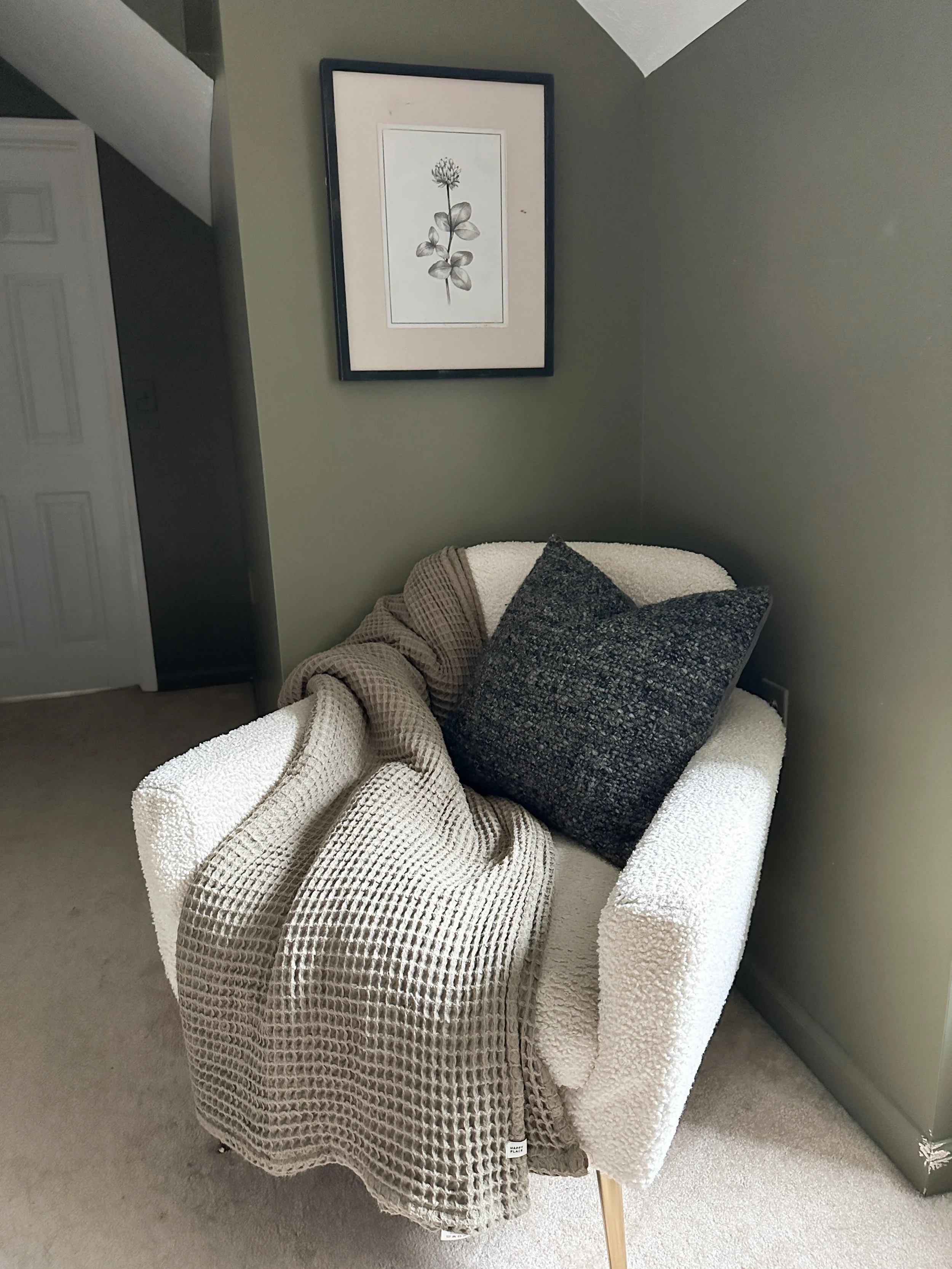 I love this color in our primary bedroom as it seems to just wrap you up in a cozy blanket of earthen green. It feels calm and balanced and creates the perfect haven for rest.