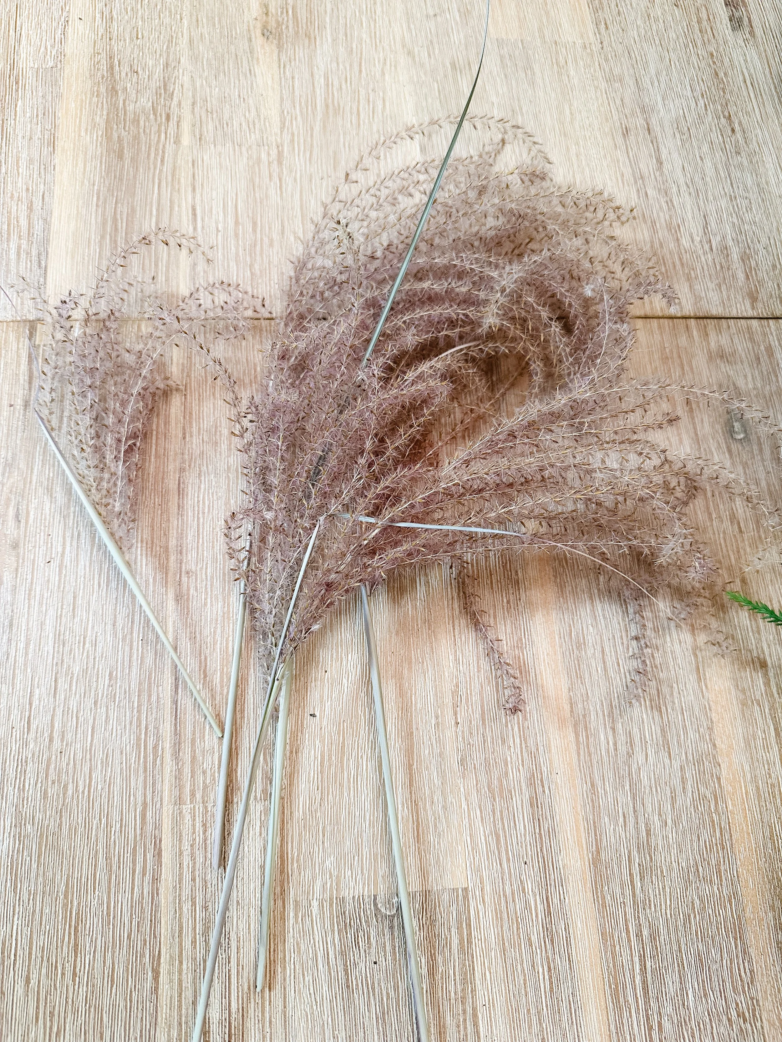 I don’t ever feel that an arrangement or floral installation is ever complete without a little whimsy. This comes from those airy, ethereal pieces that seem to just float above the piece and add some light. I absolutely love grasses for this and knew the Chinese Silver Grass I had been eyeing on the side of the road for weeks would be perfect. With its gorgeous color, perfectly curling tendrils and movement, it was just right. I really love the combination of living and dried pieces and thought it would be a fun combination in the garland as well.