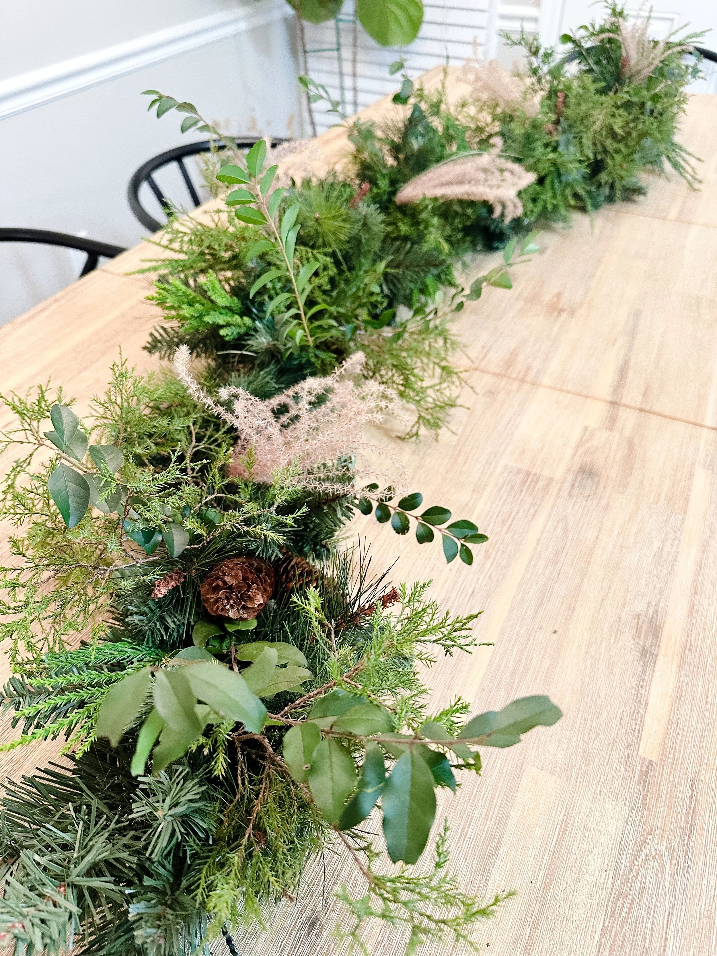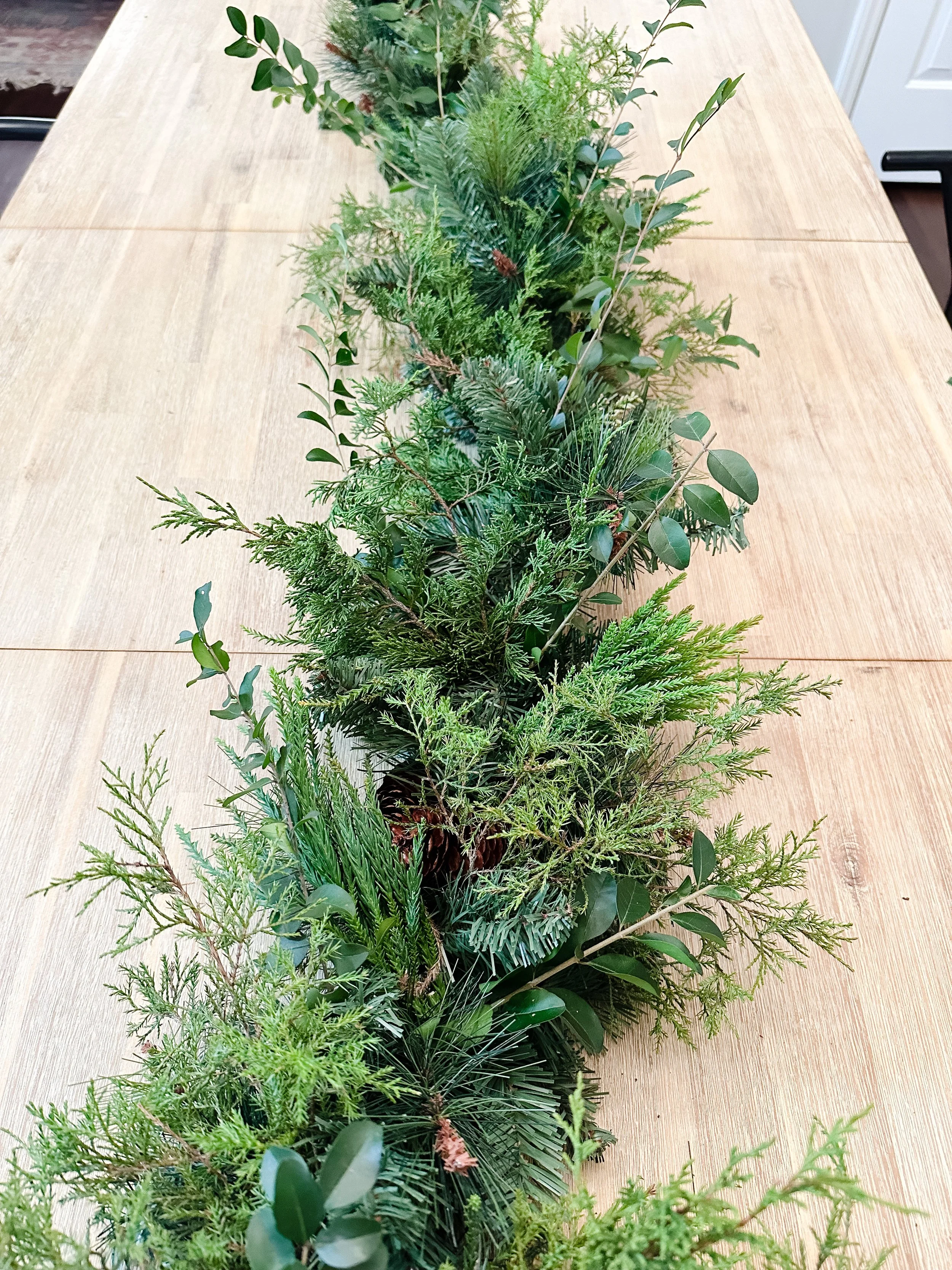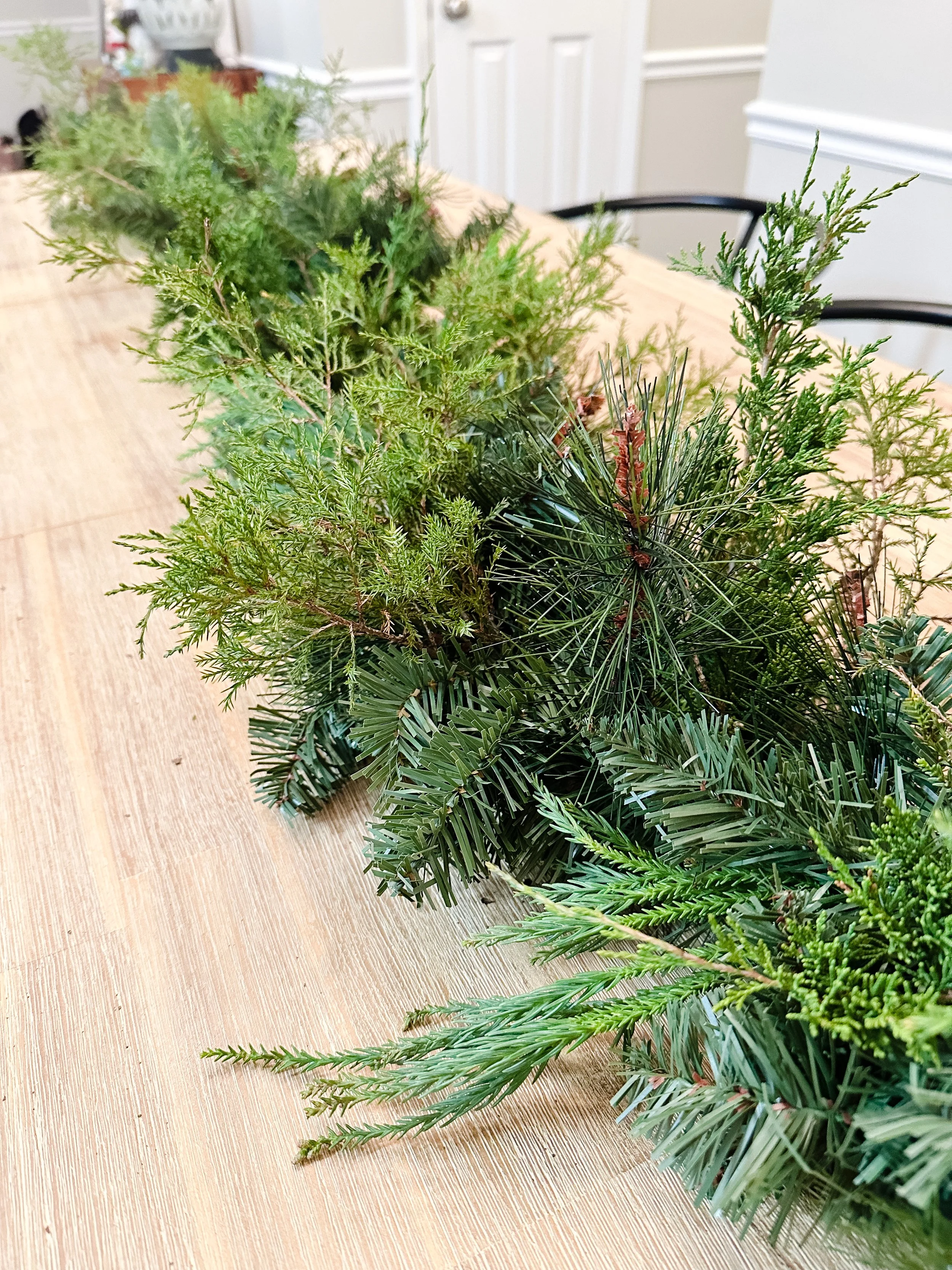 I love garland but I don’t love how much it costs. I understand the expense after having foraged for the greens and created my own in the past, but this year, I was trying to be conscious of the cost and the limited supply of evergreens. The reality of both of these facts gave me an idea.