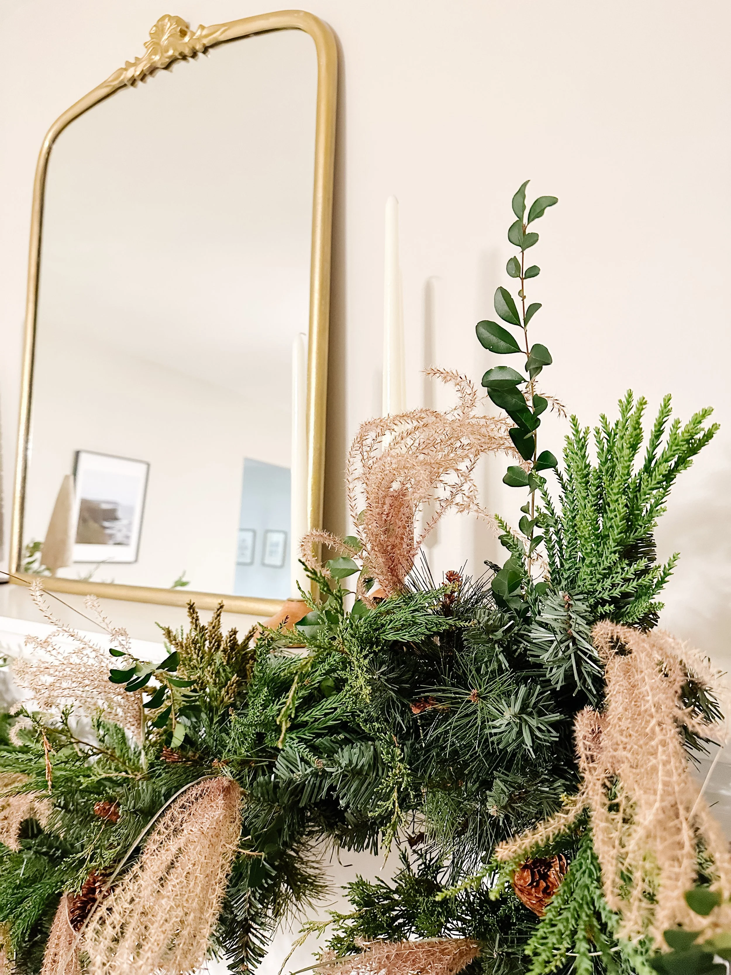 7. Hang your garland and add in any other textural items you desire