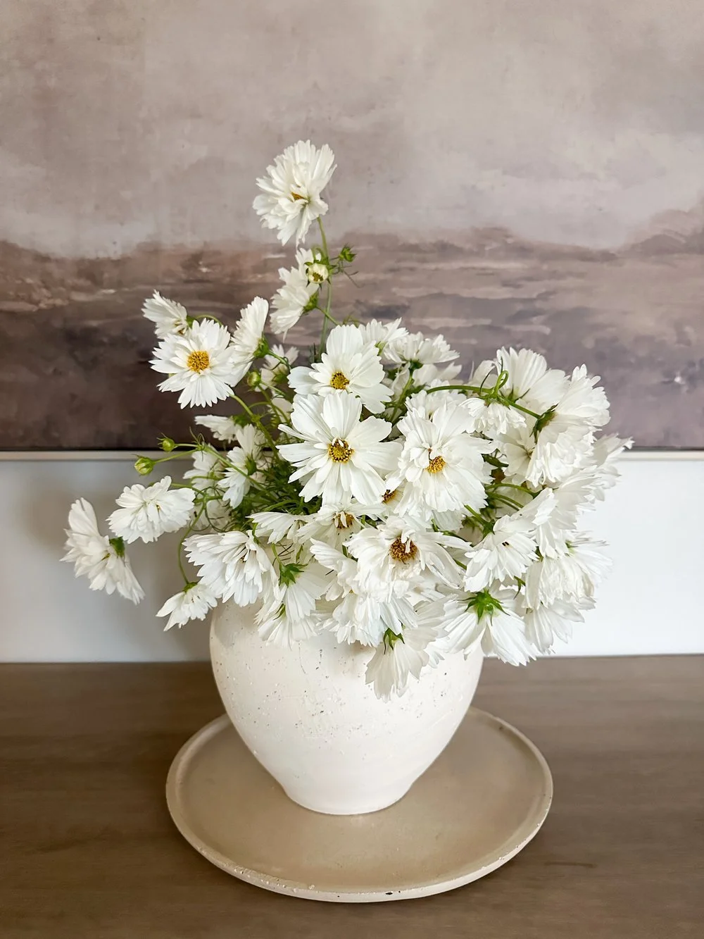 Monochrome Luxe - Single variety cosmos in a sculptural vase