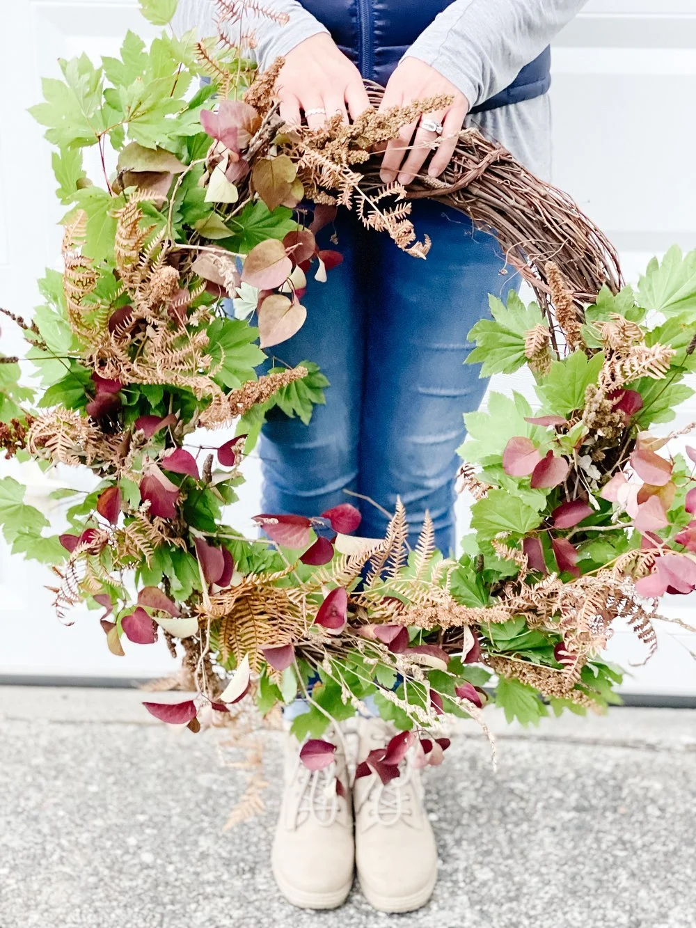 Seasonal Delight - Fall Focus (Wreath with freshly foraged greenery that will dry just as pretty as it is here.)