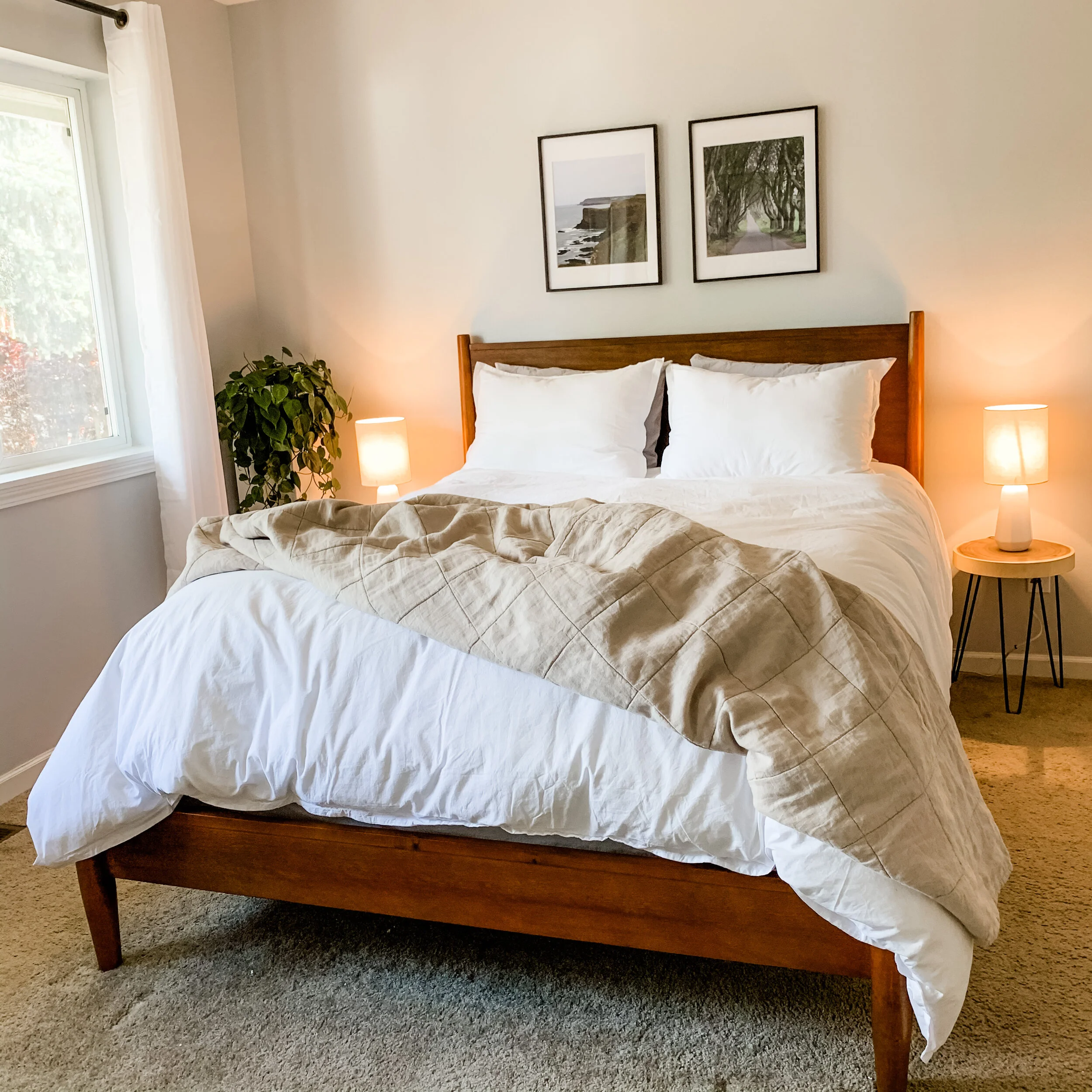 I have a firm belief that investing in quality bedding can be an absolute game changer in getting a restful night sleep, maintaining good hygiene and making your bedroom feel like a true oasis. The difference between sleeping in sheets that are pure, high quality cotton or a gorgeous linen versus sleeping in polyester is like a whole new world and you’ll never go back. Trust me. We replaced our old bedding with fresh, new, gorgeous linens from Parachute and it was one of the best moves we’ve ever made. Parachute has all kinds of different options ranging from sateen to cloud cotton to linen and percale. Our bed is topped with linen or percale sheets, a percale duvet and a cloud cotton quilt. I never want to get out of it. This female owned company focuses on creating the highest quality textiles with sustainable and socially responsible practices and I cannot speak highly enough of them. Their desire to create approachable, luxurious bedding that is good for you, for humanity and the earth is admirable to say the least. Just hop on over to their instagram to find yourself all of the cozy inspiration you need. Aside from great sheets, remember that you should be purchasing a new mattress every 6-8 years and new pillows every 1-2 years to keep your body rested and healthy.