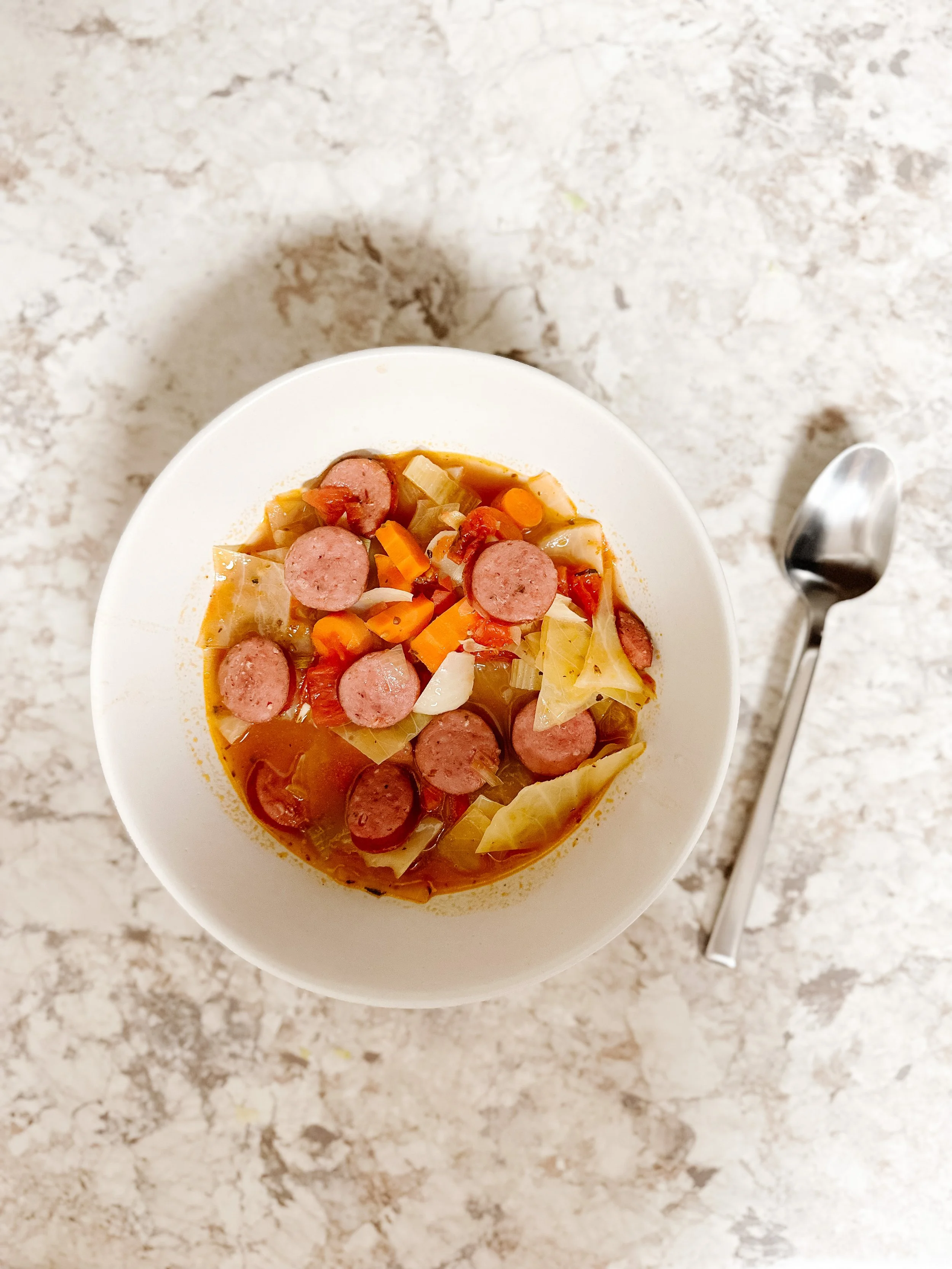 A favorite soup of mine has always been sausage and cabbage. My mom used to make a version of it in childhood, we served up the most delicious recipe of it in a cafe I worked at in highschool and as an adult, I’ve tried a number of different versions trying to find the best one. I found a recipe by The Blonde Cook and it is a winner for sure! I’ve adapted her recipe with a few changes to make it my own and I hope you enjoy it as much as we do!