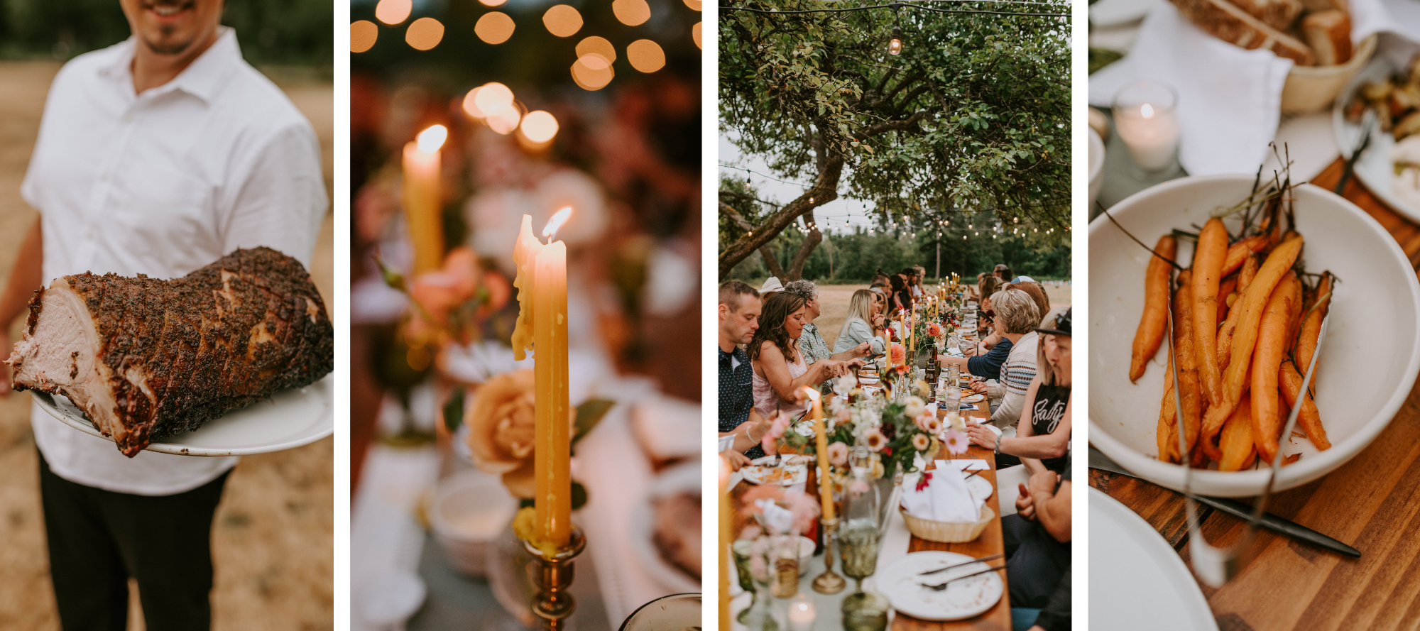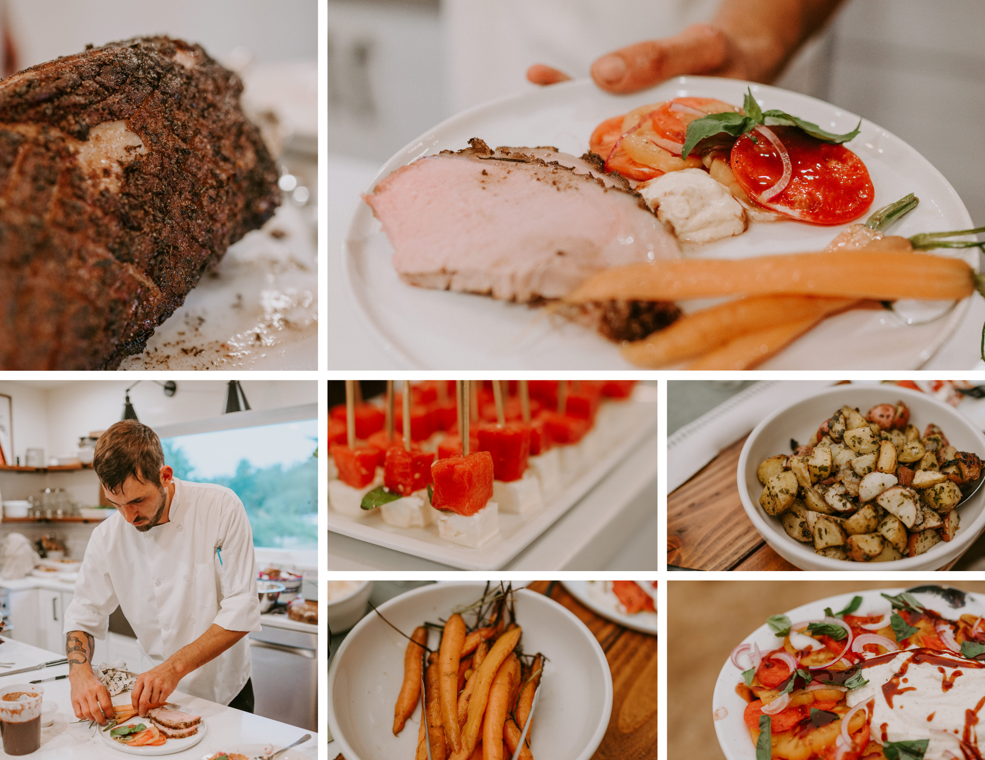 Now, pretty tables are great, but without the community gathered around them and a beautiful meal, they are just that - pretty tables. You guys..THE DINNER!!!!!! Remarkable. Period. Josh Van Hine and his team at Simply Sound Catering blew this event out of the water. They are a trio of culinary excellence - Josh, Bryan and April. With years of experience working in the fine dining industry and catering exclusive, refined events, there isn’t a detail they miss. The fact that everything was sourced right there on The Widen’s farm and from local vendors was a beautiful thing and then having a chef and team who are pure magic, took it to the next level. I ironed napkins in the dining room while Josh and his team prepared the meal and it was done with such fluidity, care and love. It was so much fun to see them work so seamlessly together, grilling this and perfecting that. They use ingredients in a way that they are each special on their own but all together create a culinary masterpiece. They crafted a meal that was as delicious as it was beautiful. Watching a childhood friend excel in his craft is such a full-heart feeling.